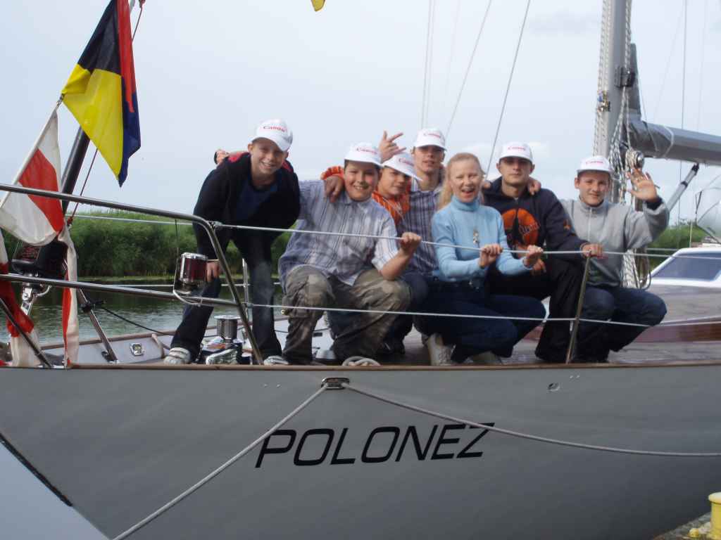 Kiedy w sierpniu b.r. „Polonezowi" dane było wreszcie poczuć po 20 latach fale wód bałtyckich, po których tańczył dostojnie w swych nowych, nieskazitelnie białych sukniach, niczym panna młoda, którą ledwo co, poślubił wiatr, i kiedy było tak słodko, że aż chciało się tą „słodkością" podzielić z całym światem - dyskretnie podeszłam do stojącego u steru właściciela jachtu i nieśmiało zagadnęłam: „Jurku, wiesz… pracuję z takimi fajnymi chłopakami w Szczecinie, uprawiamy żeglarstwo szuwarowo-bagienne na DZ po „morzu" Dąbskim. Chłopcy są bardzo dzielni i wytrwali, sezon żeglarski zakończyli 10 dni przed wigilią Bożego Narodzenia, było trochę zimno, ale cieszyli się, że jeszcze mogą być na wodzie. Ciągnie ich do wody i żagli. Czują się wyróżnieni, bo wyjście na przystań jest dla nich nagrodą. Są silnie zmotywowani i pracują nad sobą, starają się być grzeczniejsi od innych. A poza tym należy się im zwiększona dawka różnych „słodkości". Dotąd życie ich nie rozpieszczało i nie zawsze umieli sobie z tym poradzić, właściwie wybrać wyjście z trudnej sytuacji. I tak sobie pomyślałam, że …sympatycznie by było z Twojej strony, gdybyś zgodził się użyczyć „Poloneza" na trzydniowy rejs chłopaków do Świnoujścia".