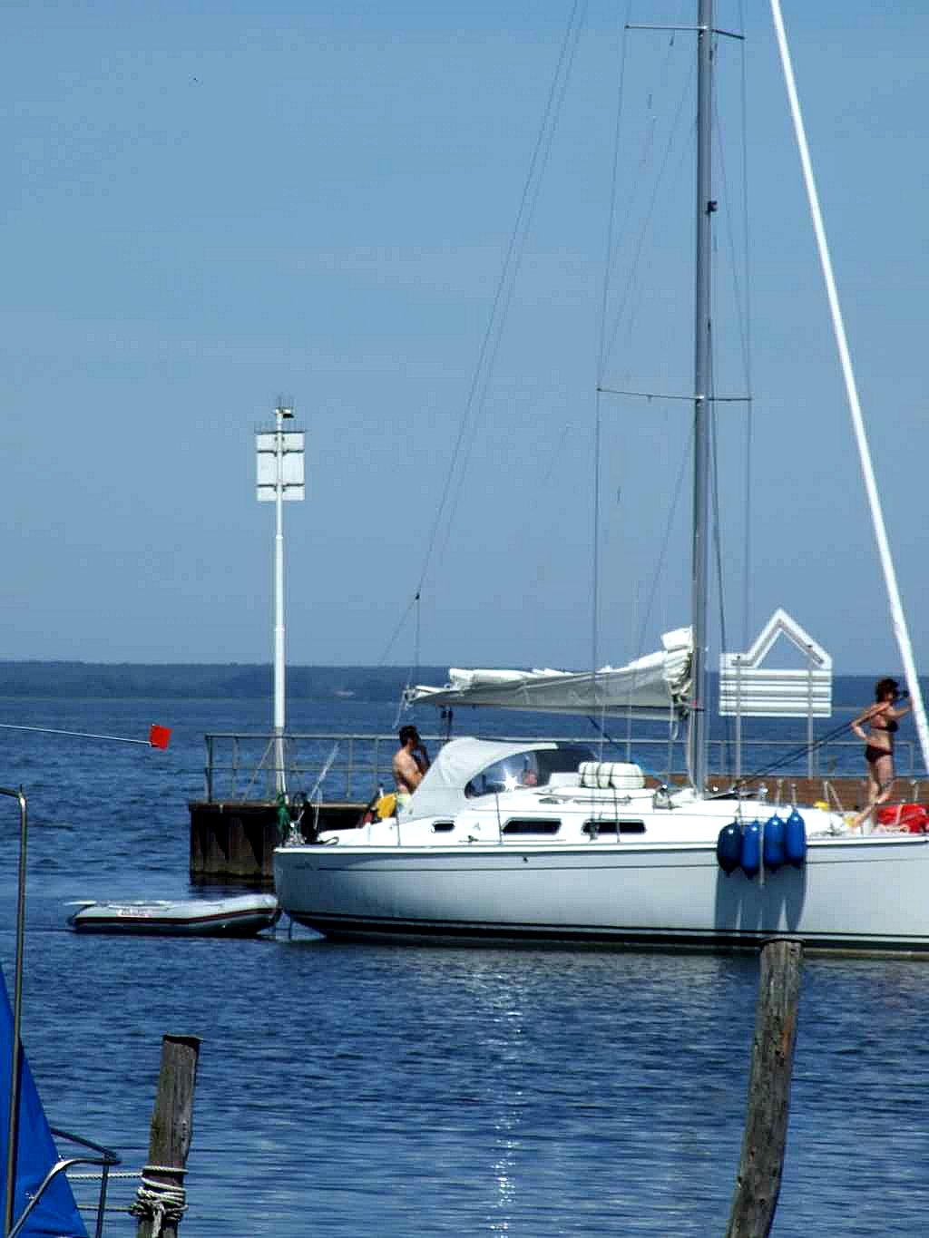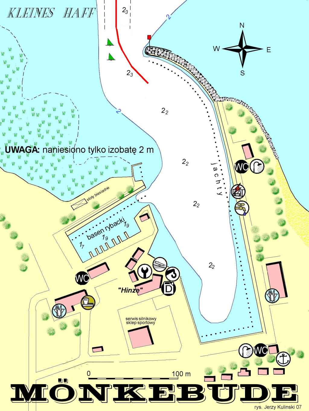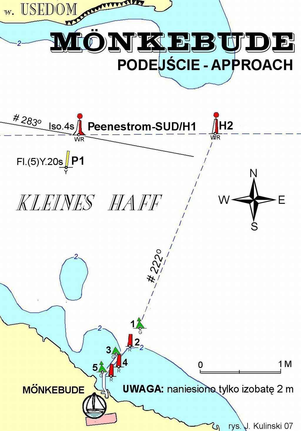 Lotnicza fotografia przedstawiała niemiecki porcik Monkebude po niemieckiej stronie Zalewu Szczecińskiego (Kleines Haff). Jest to trzeci porcik na trasie "kuchennego wyjścia" rozlewiskami Peenestrom (Piana) na Greifswalder Bodden i dalej na morze. Plan tego porciku znajduje sie na stronie 193 locyjki WYBRANE PORTY NIEMIEC WSCHODNICH.