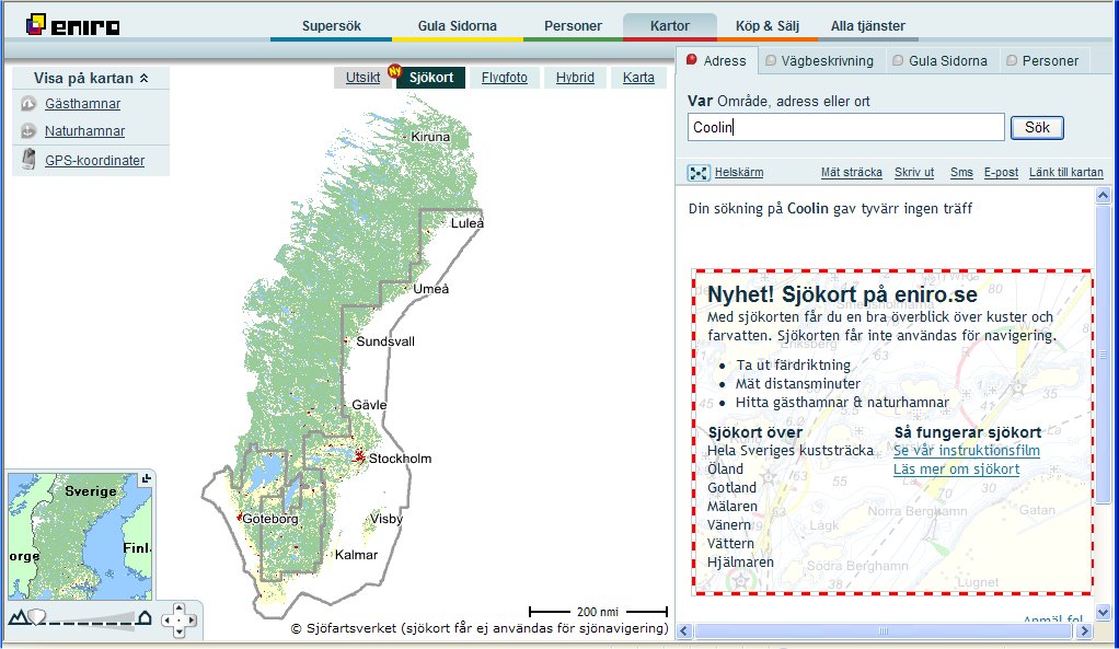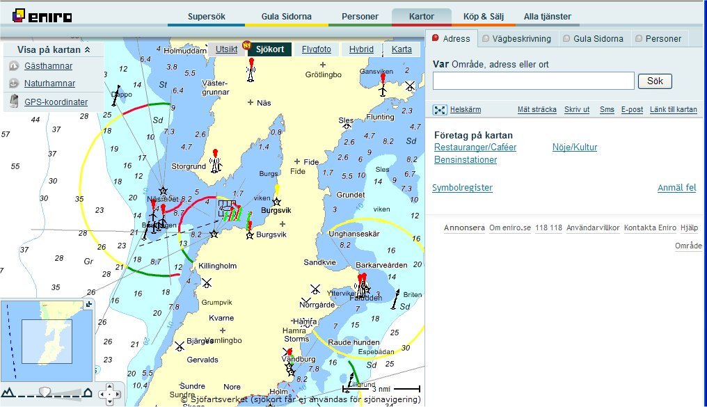 Mikael Branting to taki szwedzki Kuliński, czyli amatorski maniak hydrografii dla jachtowego użytku. Jesteśmy zaprzyjaźnieni i od lat wymieniamy się informacjami. No i dziś Mikael przysłał mi lakoniczną, ale przydatną wiadomość, że ENIRO - pewna uczynna szwedzka kompania telefoniczna opublikowała w internecie oficjalne mapy wód otaczających Szwecję. Wyglądają mi na nieco uproszczone, ale w sam raz, aby sprawdzić czy na posiadanych przez mapach coś się nie zmieniło.