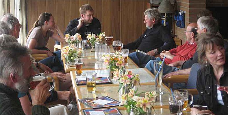 Przygotowano wiec poczestunek wewnatrz a stosowny plakat na zewnatrz budynku klubowego. Polsko angielskie rozmowy przy stole trwaly czas jakis a miejscowy dziennikarz skomentowal na odchodnym z pewnym zawodowym zalem, ze nie zebral zbyt duzo materialu do dramatycznych opowiesci o tym rejsie dookola swiata.