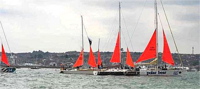 Na bramke startową wszyscy rprzypływają na żaglach sztormowych,
