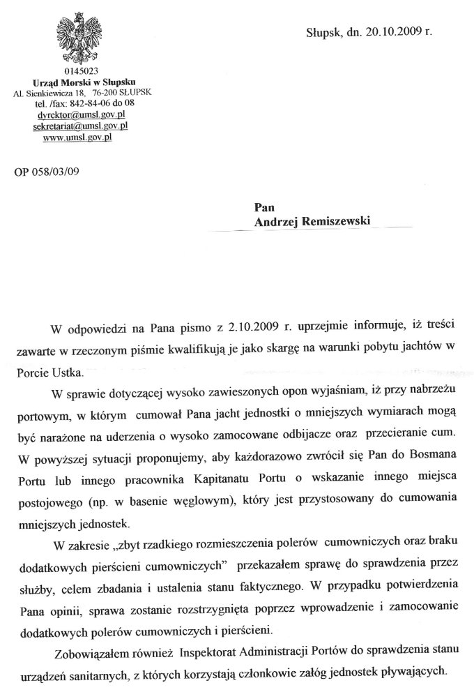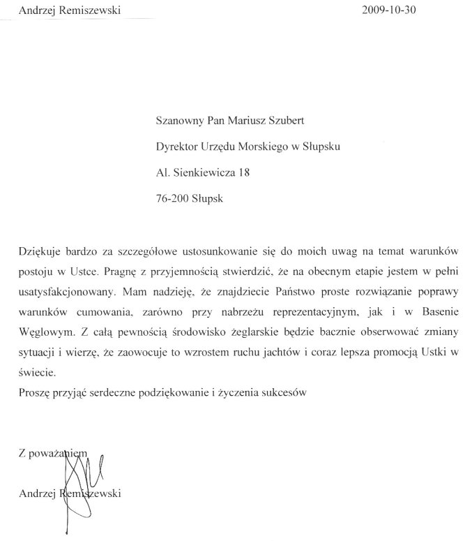 Odczytuję to, że Urząd Morski w Słupsku zreflektował się. Po zniesieniu opłat z dniem 14 października Andrzej potraktowany został jak obywatel, podatnik i klient zarazem. Buduje to wiarę, że warto zabiegać o normalność w tym kraju. I znowu wszystko dobre zaczyna się rodzić na środkowym wybrzeżu.