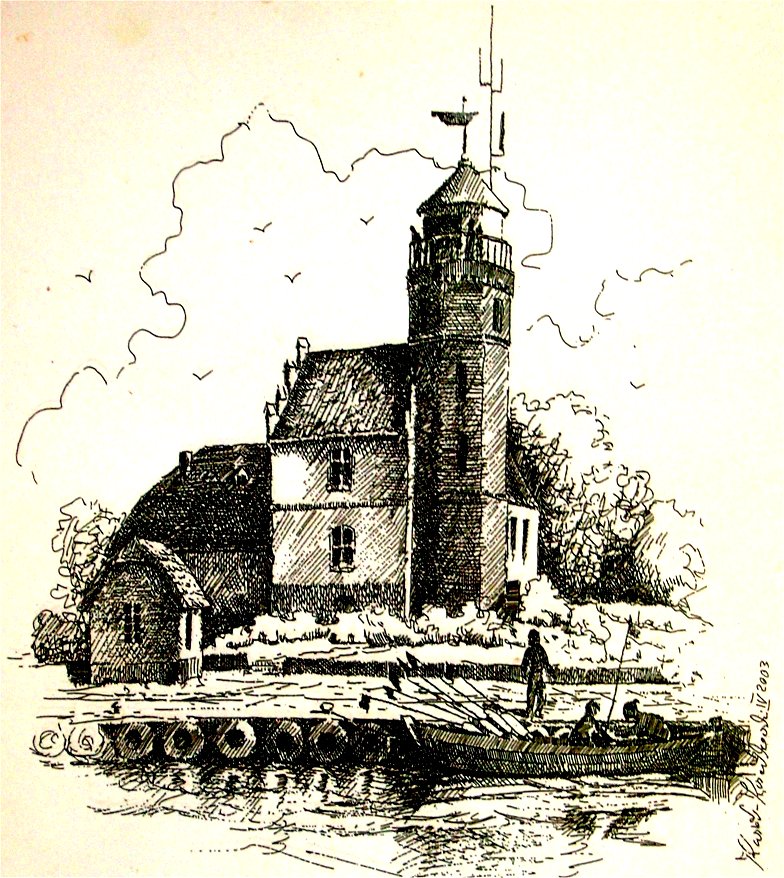Ustka - latarnia morska. Grafika Romana Kwiat Kwiatkowskiego (NCU)