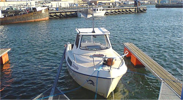 Stoją tylko dwie motorówki z czego jedna niezbyt zadbana gdyż obija się burtą o Y-bom. Patrząc po drugiej burcie - wcześniej obijała się o drugą.