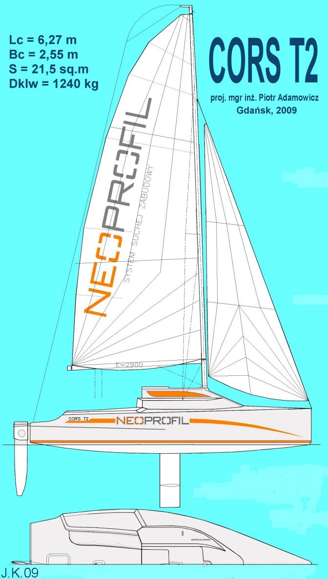 Po wielu podchodach i wybiegach udało mi się wyjednać zaproszenie do "Cors Experimental Shipyard" czyli do hali (strzeżonerj przez czarno umundurowanego "guarda" i tablicę "zły pies") , w której mgr inż. budowy okrętów Piotr Adamowicz realizuje swoją kolejną konstrukcję - tym razem do klasy "T2 - PPJK". Starego mistrza nadal kręci zaklęcie: WYMYŚLEĆ - ZAPROJEKTOWAĆ - ZBUDOWAĆ - ZWYCIĘŻYĆ W KOLEJNEJ KLASIE.
