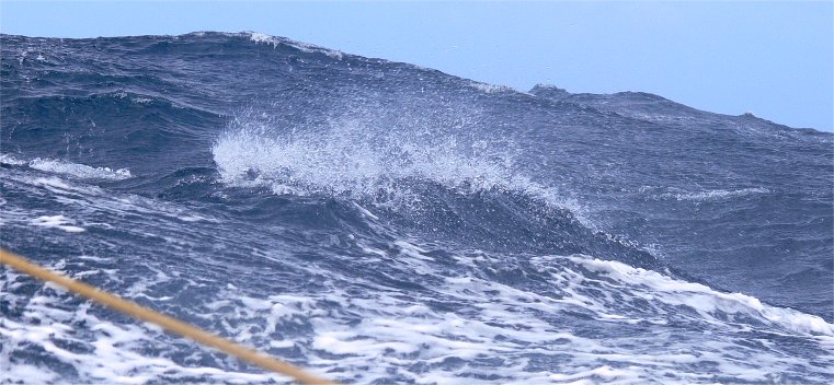 Z dobrym wiatrem juz drugiego dnia wczesnym wieczorem bylem na otwartym Pacyfiku. Krol Neptun przeegzaminowal mnie bez zwloki. Prognoza pogody rozleciala sie w drobiazgi. Coast Guard wydal ostrzezenie dla malych jednostek. Przez kilka godzin dryfowalem w absolutnej ciszy, a w miedzyczasie silniejszy niz sie spodziewano niz z frontem, nadciagal duzo wczesniej. Po polnocy wialo juz solidne 40 wezlow, z rekordowymi podmuchami 52 wezlow. Plynac jedynie pod sztormowym fokiem, przez trzy dni "Mighty Chciken" walczyla z dziesiecio metrowa fala o utrzymanie dystansu od niebezpiecznych wybrzezy Stanu Waszyngton i Stanu Oregon.