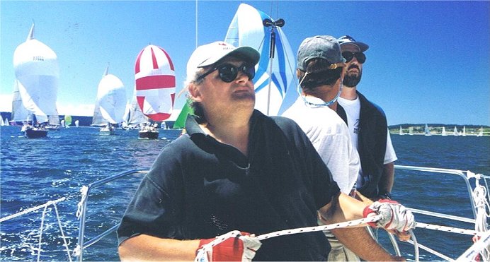 W najlepszym sezonie "Harwar" wygral praktycznie wszystko co bylo do wygrania pomiedzy Vancouver i Victoria, a na wyjezdzie, w czasie prestizowych calotygodniowych regat (Whitbey Island Race Week), jako jedyna kanadyjska zaloga w klasie, dlozylismy calej zgraji amerykanskich jachtow na ich wlasnym podworku. Lza sie w oku kreci na wspomnienie widoku zawiedzionych twarzy naszych poludniowych przyjaciol kiedy pomiary udowodnily ze ozaglaownie "Harwara" jest bez cienia watpliwosci zgodne z regulami klasy J36. Zachowujac kamienne twarze, wznosilismy kufelek za kufelkiem, usmiechajac sie tylko pod nosem jeden do drugiego. To byly piekne dni! Jedynie samotny rejs dookola swiata dostarczyl mi wiecej dumy i osobistej satysfakcji. Zaluje nie podazylem ze za moim marzeniem wczesniej. Uniknij mojego bledu. Pomyslnych wiatrow.Roy Hossak, sternik "Harwara", ma szybko postepujaca chorobe parkinsona. W czasie rejsu "Mighty Chicken", stara zaloga zebrala sie jeszcze raz aby po raz ostatni stanac na starcie najwiekszych w rejonie regat (Swiftsure International Yacht Race). W czasie dwudniowego wyscigu, Roy majac zawsze u boku odelegowanego opiekuna, dzielnie nie zmrozyl oka i nawet kilka razy wzial do reki ster. Z Royem za kolem sterowym "Harwar" przekroczyl linie mety mieszczac sie w limicie czasu.Andrzej Lepiarczyk