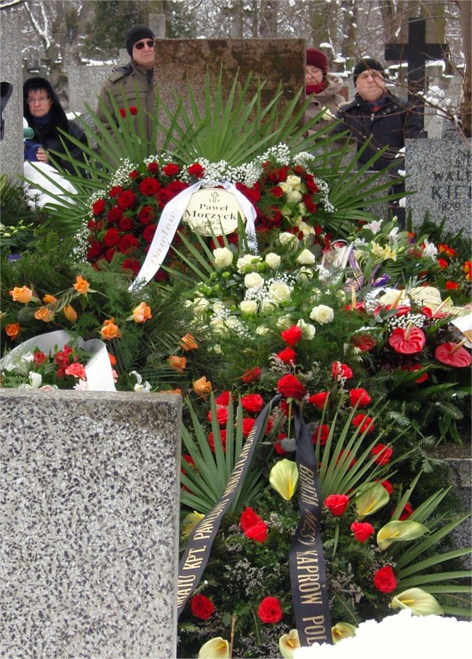 Trumnę okrywała bandera. Honorowe wachty przy Zmarłym pełnili najbliżsi przyjaciele. Wyciskajace łzy z oczu wspomnienie o Pawle wygłosił jego brat. Przemawiał także profesor Jacek Czajewski i przyjaciel z "Mesy Kaprów". Szantymeni ze „Starych Dzwonów", Marek Szurawski i Jerzy Porębski zaintonowali piesni pozegnalne. Głos trąbki był przejmujący. Wszyscy mieliśmy wilgotne oczy. Jakoś trudno uwierzyć, ze Pawełek odszedł....