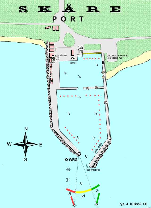 Port powstał jako rybacki, teraz zaczynają dominować jachty, a zarządzanie portem jest już w gestii miejscowego jachtklubu Skare Batklubb. Bardzo mili panowie, fajna atmosfera, skromne, zadbane apartamenta (sala klubowa i sanitariat). Koniecznie przekażcie pozdrowienia od starego Don Jorge.