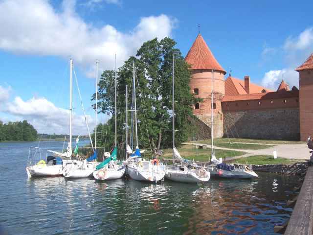 Przepraszam za kilkodniową pauzę. Byłem na Litwie, szukałem śladów przedwojennego jachtklubu w Trokach. Pstryknąłem fotkę drewnianego baraku na kamiennej podmurówce. Fotografia zostanie poddana ekspertyzie - czy to jest to. Jezioro piękne, zamek imponujący. A na wodach podzamcza wcale spore jachty (foto). Świat nieco pokręcony - mieczowe żaglóweczki na morzu, balastowe łódki na jeziorze.