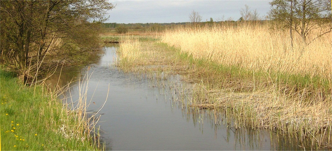 Czyli kanał derywacyjny, to znaczy kanał równoległy, ale nie naruszający istniejących wahań stanów wody w jeziorze (śluza, wrota ?). Pierwszym, najważniejszym, oczywistym kryterium wyboru trasy jest długość kanału. Dalej - budowle towarzyszące (mosty zwodzone) oraz istniejąca zabudowa terenu wraz z prawami własnościowymi. Wreszcie - sprawa obecnie nadwrażliwa - zachowanie charakteru krajobrazu wraz z jego florą i fauną. Patrząc - najpierw na mapę, a później przemierzając teren - wydało mi się że kanał derywacyjny powinien przebiegać przez teren leżący na zachód od rzeczki Piasnica Dolna. Ten wariant w myślach nazwałem "A", czyli "na chłopski rozum". Kanał miałby około 4,5 kilometra długości oraz 2 mosty zwodzone. Jeden "prawdziwy" drogowy przy jeziorze (droga między Żarnowcem a Wierzchucinem) oraz kładka w linii drogi między Białogórą i Dębkami (blisko morza). Jego trasa przebiegała by przez nieużytki dość gęsto pocięte rowami. Średnia wysokość terenu - 1,3 m npm. Wariant ten wydawał mi się być oczywistym. Myślałem także o minimalizowaniu ingerencji, czyli wykorzystania górnego, kilkusetmetrowego, szerokiego, prawie uregulowanego oraz nieco krótszego odcinka koryta rzeczki Piaśnica. Nic z tego! Odbiłem się, a właściwie odbił mnie od takiego pomysłu pan Białk. Ścianą okazało się zaklęcie "Natura 2000". Patrzę teraz na fotografie. Przecież przyroda na tym terenie tylko by na kanale zyskała. Z dogmatykami dyskusje są mało obiecujące.