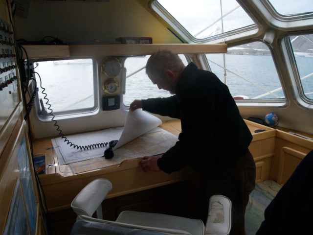 Z jachtów widocznych na zdjęciu, dwa uszkodziły sobie śruby podchodząc do kotwicowiska. Pomimo starań mechanika stacji, obydwa musiały odpłynąć do Norwegii na żaglach. Mnie pozostało tylko postawić tykę ostrzegawczą na najbardziej zdradliwym głazie i każdemu i na przyszłość doradzać podejście do brzegu tylko na niskiej wodzie, kiedy widać linię przybrzeżnych szkierów.