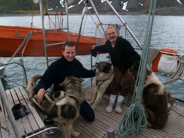 Wyposażenie jachtu do polarnej podróży, tutaj na pokładzie Vagabond'a ilustrują zdjęcia 3 i 4. Psy na pokładzie towarzyszyły zimowaniu jachtu jako niezawodny wskaźnik obecności niedźwiedzia w pobliżu wmarzniętego jachtu. Tutaj wiezione do Longer na lata, kiedy Vagabond będzie bobrował po licznych fiordach wyspy i badał ją naukowo pod kątem ocieplania - bądź nie, klimatu.