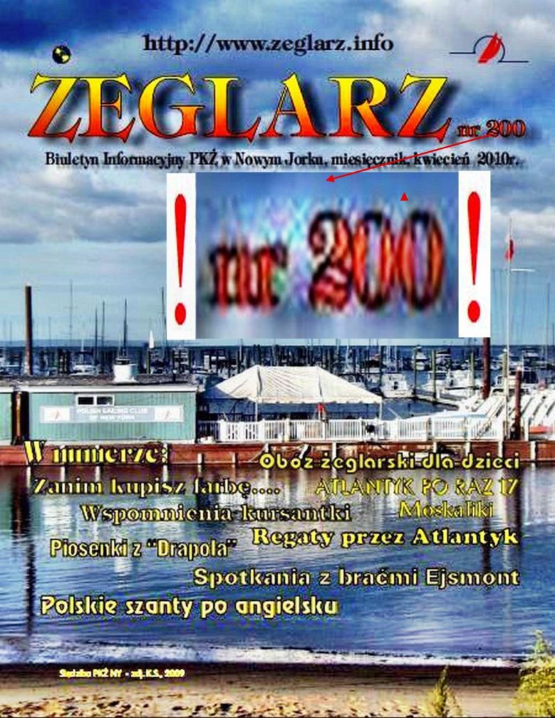 Kpt. Jerzy Knabe, najbardziej znany i o wszystkim doskonale poinformowany żeglarz polonijny - specjalnie dla SSI przysłał news o sukcesie nowojorskiego miesięcznika "ZEGLARZ" (o którym dawno, bo dawno było coś w tym okienku). Otóż Redaktor Naczelny Krzysztof Sierant dopracował się już dwusetnego numeru. Nieprzerwanie od 17 lat, punktualnie, ciekawie, kolorowo, absolutnie samodzielnie i .... za własne pieniądze. To jest Gość!