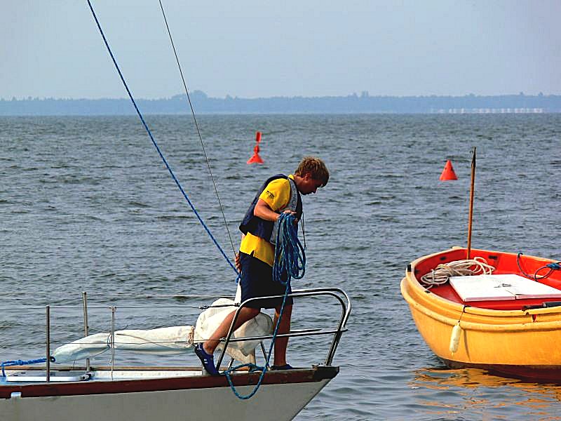 Helskie ygrek bomy, przez tydzień zapchane jachtami oczekującymi na poprawę pogody. Sztorm podobno. Codziennie odwiązuję ex. holenderską łódkę i sobie z dzieckiem osiemnastoletnim żeglujemy dookoła cypla celem zabicia wakacyjnego czasu. Żeglujemy bez silnika, bo przestarzałe urzadzenie holenderskie wyziąnęło ducha i czeka na naprawę. Któregoś dnia w końcu niekorzystny wiatr i chwila nieuwagi rzuca nas przy odejściu po koleii na rufy kilku sąsiednich jachtów. Nic się nie dzieje takiego prócz odrobiny zamieszania. Dowiaduję się za to, że już od tygodnia się tutaj POPISUJĘ [????], i dobry Pan Bóg mnie wreszcie ukarał.