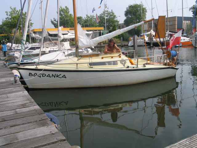 Pod koniec z lipca odwiedziliśmy Amsterdam naszym jachtem. To był okres niebywałych upałów i zadecydowaliśmy spedzić nieco czasu w tym pięknym miescie, uznajac to za zajecie bardziej interesujace niż porządkowanie jachtu. Niespodziewanie do portu zawinęła mała zaglówka - s/y "Bogdanka" z miłym żeglarzem w kokpicie. Od razu zaprzyjaźniliśmy się i wypiliśmy razem nieco piwa. Bogdan opowiedział nam o swoim rejsie z dalekiej Polski z zamiarem poznania całej Europy. On przypłynął z wschodniej Europy do Niemiec, przezimował, pracował u jakiegoś boatbuildera, aby zarobić pieniadze na kontynuwanie rejsu. Zeglował po Morzu Pólnocnej, przebył Ijsselmeer i tak dopłynał do Amsterdamu. On marzy o przepłynieciu Atlantyku. Bawiliśmy sie razem i zrobiliśmy sobie wiele fotografii. Bogdan prosił, abym napisał do Pana i przesłał jakąś fotkę na uzytek Pańskiej witryny internetowej.