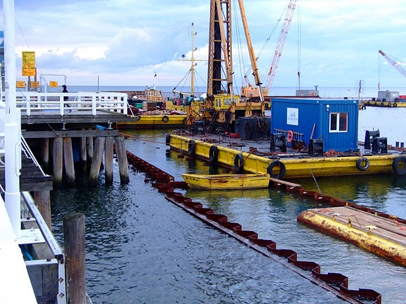 Molo jest normalnie otwarte dla turystów (wstęp normalnie płatny: dorosły 4,30, ulgowy 2,20 PLN) .Tylko głowica jest odgrodzona. Jest tam zaplecze placu budowy ze sprzętem, kontenerami, budkami ochrony, materiałami, Toy-Toy -ami itp. Trzeba przyznać, że tempo roboty - przynajmniej jak na gust laika niezłe.