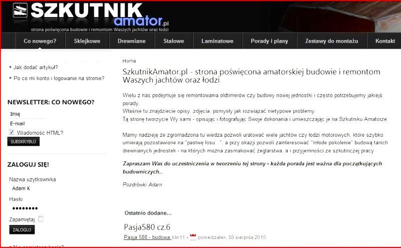 W załączniku moja fotka jak sobie życzyłeś J i zrzut ekranu strony głównej szkutnika.
