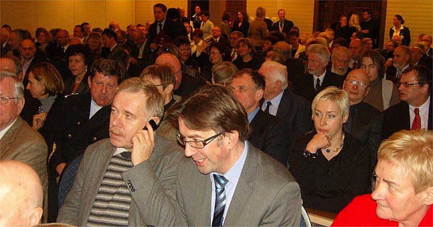 Dyrektor CMM - dr inż Jerzy Litwin zaprosił wielu VIPów oraz sporą grupkę starych. W tej drugiej grupie się załapałem na listę. Było nie było - asystowałem przecież kiedyś w wodowaniu rudowęglowca "Sołdek". Przybyli między innym Marszałek Senatu Bogdan Borusewicz, V-Minister Infrastruktury d/s gospodarki morskiej - kpt. Anna Wypych-Namiotko, Prezydent Gdańska - Paweł Adamowicz, poseł Jan Kulas, wysokiej rangi oficerowie, dyrektorzy departamentów, bratnich muzeów i firm, konsulowie, profesorowie, prezesi, artyści, kustosze, seniorzy i nestorzy - elita. Sala wypełniona. Wszyscy panowie w marynarkach i pod krawatami.