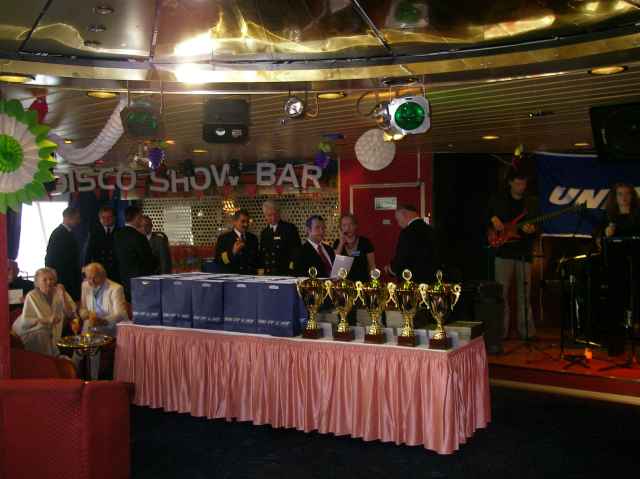 Zakończenie VI Regat Unity Line tradycyjnie odbyło się w dwa tygodnie po regatach, w dniu 27 sierpnia na promie „Polonia” w porcie w Świnoujściu. Zaproszono 234 gości i mimo że była to niedziela i żeby dojechać ze Szczecina trzeba było wcześnie rano wstać frekwencja była jak zawsze znakomita. Równie znakomite było przyjęcie żeglarzy i zaproszonych gości przez gospodarzy – Prezesa Unity Line Piotra Waszczenkę i kapitanów promu „Polonia” – kpt.ż.w. Marka Szymońskiego i kpt.ż.w. Grzegorza Bordycha.