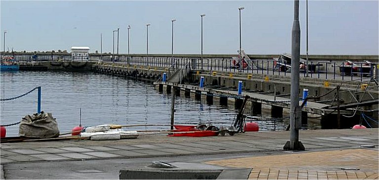 Pustki, na razie w basenie jachtowym stoja kutry a y-bomy leżą na nabrzeżu. W głębi