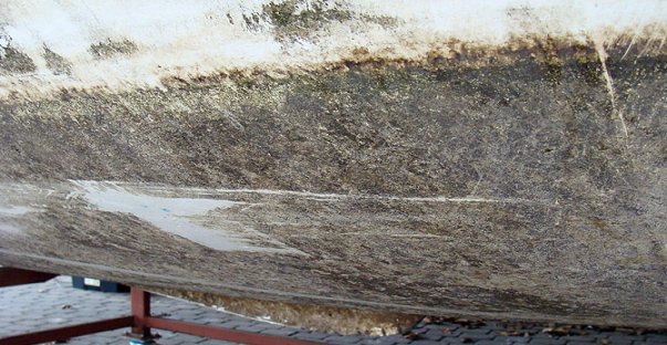 Po roku straconym z życia, kiedy pożegnawszy się z s/y "Batiar", zostałem na lodzie, przepraszam, na lądzie i smętnie snułem się po tym lądzie, zmagając się z rozpaczą żony po starcie jachtu, postanowiliśmy naprawić błąd i stać się ponownie posiadaczami jachtu. Skromne emeryckie zasoby pokierowały nas na szukanie okazji i takowa się trafiła w postaci dobrze utrzymanego VIS 65. Dobrze, z wyjątkiem kadłuba a szczególnie dna jachtu. Jacht stał na elektrownianym zbiorniku wody używanej do chłodzenia turbin i w tej ciepłej wodzie legły się najrozmaitsze żyjątka, które z kolei wręcz wżarły się w dno jachtu. Pokazuje to poniższe zdjęcie.