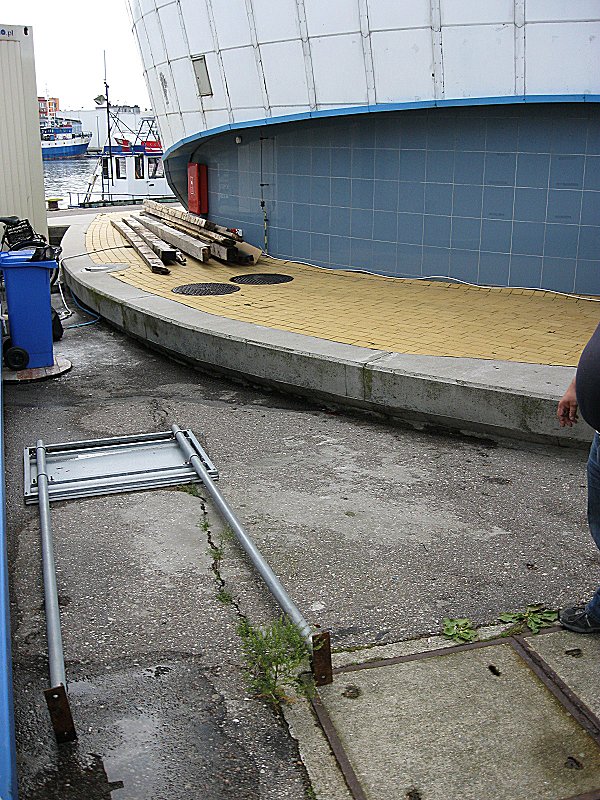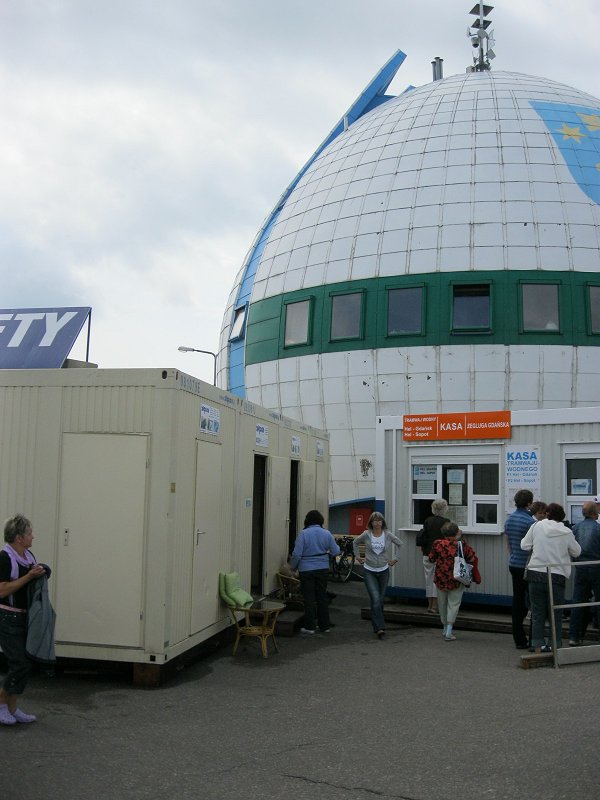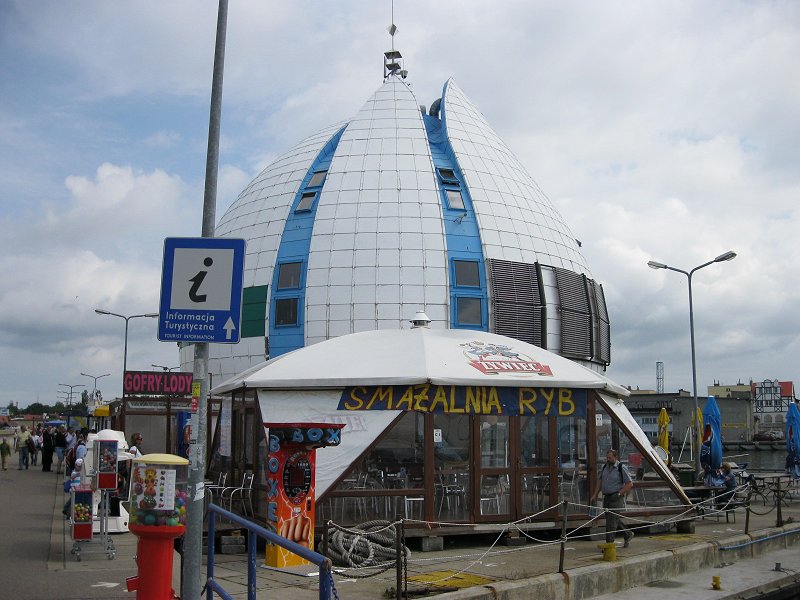 Teraz "zaplecze" w "jaju" przestało istnieć. Dostęp od strony przystani jest zablokowany smażalnią. Czy to Unia daje pieniądze na budowę zaplecza socjalnego, aby ktoś robił sobie na nich biznes dyskotekowy? A można było za te pieniądze postawić schludne i ekonomicznie uzasadnione baraczki, jak ma to miejsce w portach szwedzkich, a za resztę pieniędzy przygotować lepiej nabrzeża, wystawić y-bomy, podciągnąć wodę na całość przystani, zmienić koszmarne gumowe "odbojnice" i brudzące opony na coś estetycznego i dopasowanego do postoju jachtów.