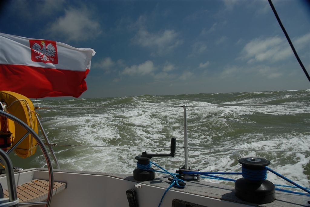 Z uwagi na duży ruch promów Almanach Reedsa zaleca uzyskanie zgody Ramsgate Harbour Master na wejście do portu, a pływanie w porcie na żaglach jest kategorycznie zabronione. Dwie mile przed główkami zgłosiłem się więc przez UKF do Ramsgate Harbour Master, by poprosić o zgodę na wejście do portu na żaglach, gdyż pogoda nie zachęcała do zrzucania żagli przed główkami, szczególnie że byliśmy tylko we dwóch. Aż do rozmowy z Ramsgate Harbour Master sądziłem, że znam język angielski (pal licho szkoły i egzaminy, ale przecież na co dzień pracuję na angielskich tekstach prawniczych), okazało się, że jednak nie. Po kolejnej nieudanej próbie zrozumienia odpowiedzi z Harbour Master, byłem o krok od wykrzyczenia do UKF-ki: „Please do not heasitate and speak English”, ale ugryzłem się w język. W końcu byliśmy w Anglii. Nie wiedząc, czy możemy wchodzić do portu na żaglach czy nie, postanowiłem jednak zrzucić grota przed główkami i wchodzić baksztagiem na samej gieni, którą zaraz za główkami mieliśmy zrolować. Tak też zrobiliśmy. Teraz uważam, że wchodzenie do portu na samej gieni z wiatrem 7 B z baksztagu było błędem, bo gdyby cokolwiek się wydarzyło i musielibyśmy wyostrzyć i pójść pod silny prąd (na przykład żeby puścić wychodzący prom), to na gieni i silniku moglibyśmy nie dać rady. Następnym razem wchodziłbym na obu żaglach (zarefowanych oczywiście), tak by mieć zapewnioną manewrowość, a nie po prostu wpadał z wiatrem. W marinie byliśmy godzinę przed niską wodą, więc przy manewrach byliśmy dobrze osłonięci od wiatru przez potężne falochrony (różnica pomiędzy wysoką a niską wodą to około 5 m). Do portu weszliśmy koło 1300, a o 1700 już wiało regularne 8 B z NE-E tężejące w nocy do 9 B. I oczywiście lało. Wieczór spędziliśmy w pubie.