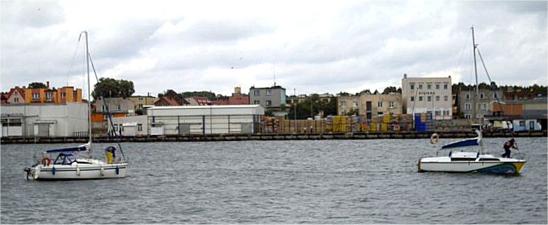 Ustka to najgorszy z odwiedzonych portów, staliśmy przy oponach i kołysało stale (dwie cumy przetarte). Wojsko strzelało na poligonie, więc droga dalsza była zamknięta, była tylko przerwa między 2 a 5 rano, a to mało na płynięcie pod wiatr do Darłowa i jeszcze w nocy. Opłynąć akwen zamknięty się bałem więc zawróciliśmy i znów fordewind z prędkościami do 7w i słonko, port Łeba to najładniejszy i najlepiej zorganizowany z portów.