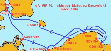 Nasz skipper - Mateusz Kaczyński mieszka w dalekim Radomiu. Skrzyknął sobie rówieśników (tylko jeden był starszy) - Michała Tkaciuka (ż.j. - I Oficer), Michała Kalbarczyka (ż.j. - II Oficer), Andrzeja Baja (st.j), Daniela Dasiewicza (ż.j) oraz Mateusza Żaka (ż.j) i pozeglowali sobie do Kopenhagi. Przebyli 705 mil. Jacht zawierzył im kpt Witold Gizler. Był to dzielny "Carter 30" o dośc pretensjonalnej nazwie "VIP PL". Ja już widzę miny starych kapitanów. Zwłaszcza tych z Rady Starców.