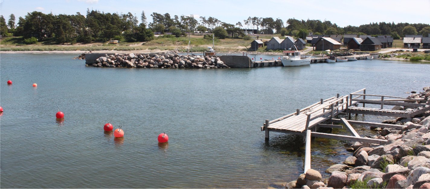 wewnętrznej zbudowano drewniany pomost cumowniczy dla jachtów. Cumować też można do przygłowicowego odcinka nabrzeża falochronowego. Gdyby falowanie się wzmagało – można starać się o pozwolenie przestawienia jachtu do basenu wewnętrznego, ale tam jest już naprawdę płytko. Tylko tam oświetlenie kei. Nieliczne, punkty poboru prądu i wody zlokalizowano na brzegu. Z usług bytowych tylko toaleta. Gospodarzem tego gospodarstwa jest pan Lennart Melin (tel. 0498-24 11 51 oraz 0704-75 25 51). Opłata postojowa 60 SEK.