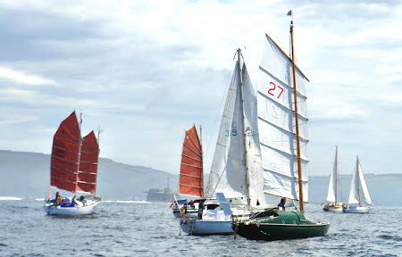Nasz pan kierownik żeglugi - ten który czekał na Marka - podchodzi do nas i wskazuje daleko w kierunku Plymouth. ‘To wasz Edward! Niebawem podpłyniemy bliżej i bedziecie mogli pomachać mu waszą flagą - i wszyscy zaśpiewamy mu polski hymn narodowy... ‘ Do śpiewania jakoś nie doszło ale do machania oraz głośnych okrzyków i to nie tylko od nas samych - jak najbardziej. Myślę, ze było Zającowi przyjemnie. On też nam robił zdjęcia... Na moje oko spóźnił się na start ponad 15 minut ale to nie ma wielkiego znaczenia. Jego łódka jest chyba najmniejsza ze wszystkich startujących, co za tym idzie – najwolniejsza, więc nie o rekordy czasowe tu chodzi. Liczy się udział – i zakończenie.