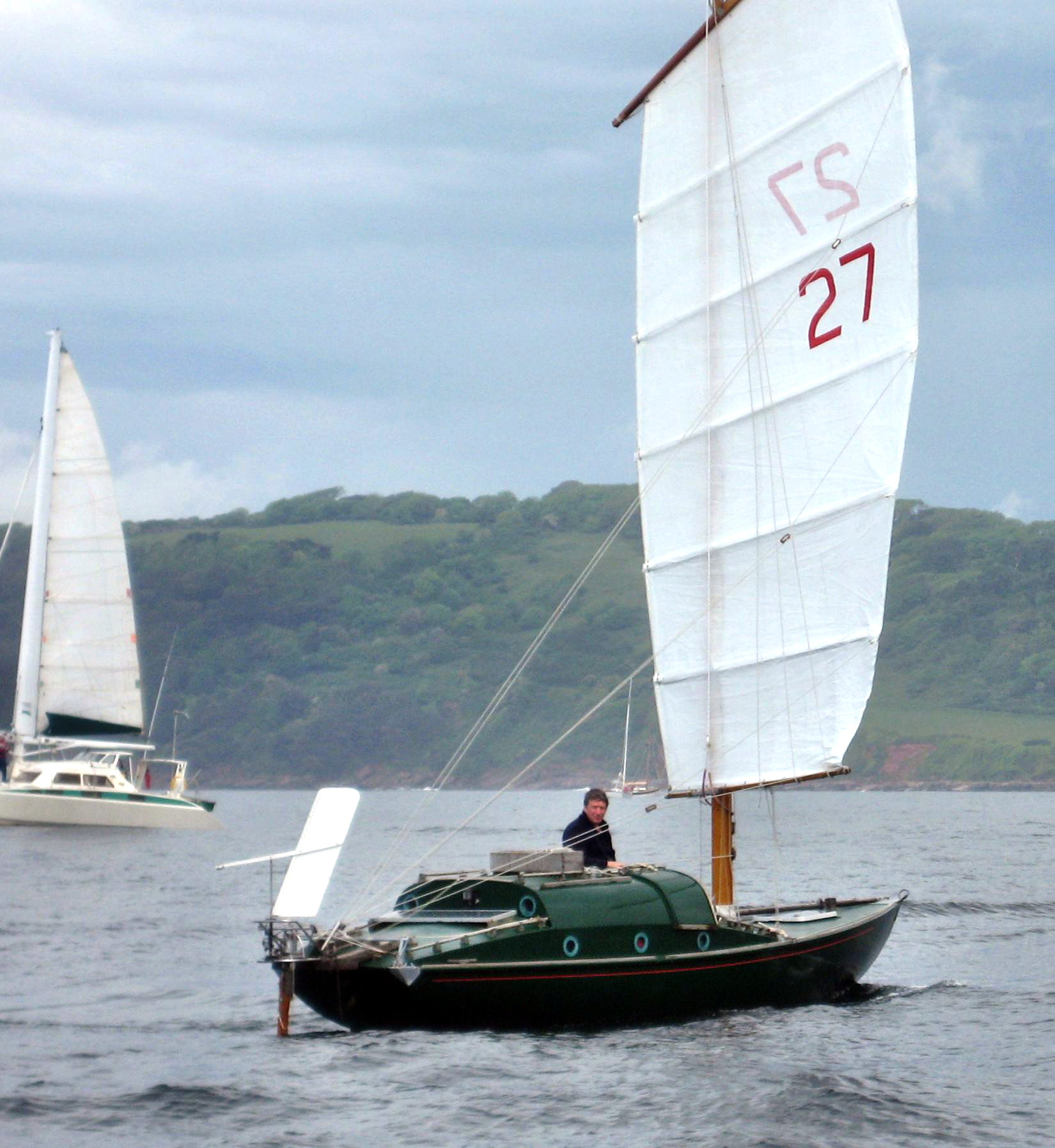 Teraz o pogodzie. „Windguru” zapowiadał mi w Londynie, że będzie pochmurno i opady. Ale wiatr 3 do 4 z SW ma wkrótce po starcie zacząć przechodzić na południe no i trochę się wzmocnić. A potem sie rozpogodzi. W sumie – korzystne zapowiedzi. Cała drogę z Londynu pokonujemy przy bezchmurnej pogodzie. Już są kąśliwe uwagu na temat mojego wybranego przepowiadacza pogody, ale cóż – dojeżdżąmy do Plymouth, zachmurzenie rośnie a gdy żegnamy Edwarda przy kei, już zaczyna padać. W drodze na start deszcz jednak ustaje i jeszcze przed 12:00 robi się słonecznie. W sam raz do fotografowania.