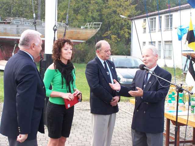 Jachtklub Stoczni Gdańskiej ma juz 50 lat. Normalnie o takim jubileuszu mówimy "Piernikalia". Nasz zasłużony i znany Jubilat ma sie dobrze i jest filarem Gdańskiej Federacji Żeglarskiej. Nie tylko dlatego, ze Jan Talik łaczy funkcje Komandora Jachtklubu i Prezesa Federacji. Ja też przybyłem na tą uroczystość w imieniu dwóch instytucji: miesięcznika ŻAGLE oraz Stowarzyszenia Armatorów Jachtowych :-) Skoro już jestem przy SAJ-u to czuję się zobowiązany donieść, że "Objazdowe Biuro SAJ" i tu przyjechało, prowadziło werbunek i przyjmowało składki. Przypominam - Statut, deklaracja, konto wpłat, adres korespondencyjny jest na mojej witrynie. Trzeba tylko uważnie szukać