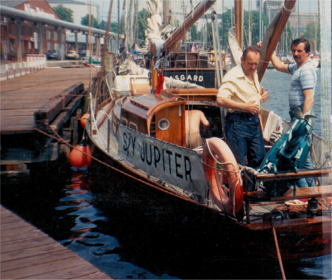 "Jupiter" 30 lat temu (Flensburg, na rufie Józior Plenikowski i Roman Szempliński) A tu dwie aktualne fotografie tego samego jachtu.