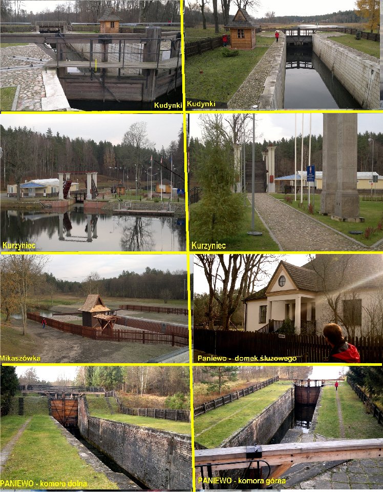 Śluza Kudrynki (spad max 2,17 m) 15 lat temu była w fatalnym stanie, jak śluza Tartak. Kapitalny remont jazu i śluzy rozpoczęto w r 2004, a zakończenie planowano na czerwiec 2007. Budżet zamknął się kwotą 7,4 mln zł przy wsparciu NFOŚiGW. W maju ub.r. widziałem ją już po całkowitym remoncie. Na większości śluz znajdują się tablice pamiątkowe informujące o nazwisku budowniczego z datą, niektóre niestety zaginęły. Czytamy więc, że śluzę Kudrynki budowali porucznicy inżynierów Bieliński i Horain w latach 1828-1829, czyli 2 lata budowy , a ostatnio 7 lat remontu – a gdyby jeszcze zastosować empiryczny współczynnik postępu technicznego, to jak wypadłoby to porównanie?