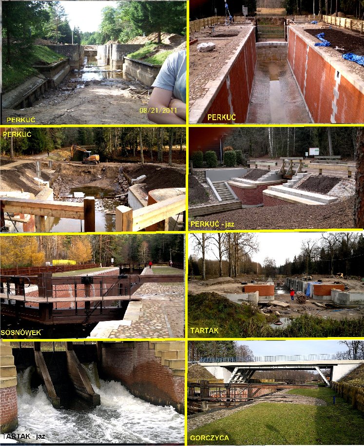 Śluza Tartak (spad max 2,02 m) 15 lat temu widzieliśmy ją z uszkodzonymi wrotami, zamuloną i zarośniętą tatarakiem i rzęsą. Obecnie w trakcie remontu. Jestem pewien, że mimo zapowiedzi o zakończeniu remontu wszystkich śluz z końcem bieżącego roku, ta na pewno gotowa nie będzie. Przygodnie spotkany wędkarz z Augustowa powiedział nam, że w trakcie końcowych prac remontowych ścian komory napotkano problemy z przesiąkaniem wody, co wymagało ponownych prac betoniarskich. Termin zakończenia prac trudny do oszacowania – może koniec 2013r ? . Koszt remontu mostu i śluzy to ponad 9,4 mln zł z NFOŚiGW.