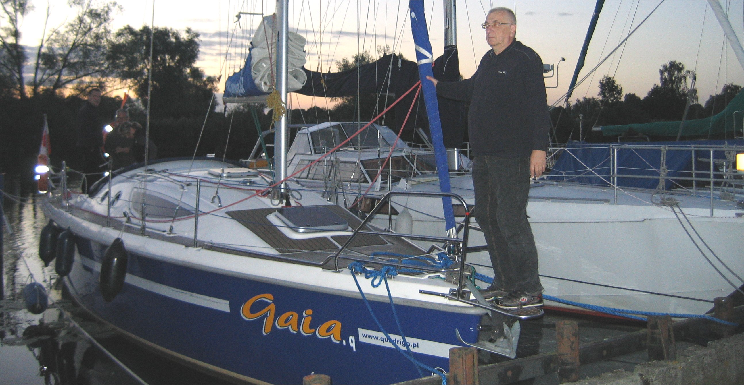 Na naszym, noszącym nazwę Gaia.q mamy największy z naszej flotylli trzech jachtów silnik, ster strumieniowy, echosondę, GPS z ploterem map, do tego komplet map papierowych, locje i spisy świateł. Wyposażenie w środki ratunkowe i apteczkę nie budzi zastrzeżeń. Jak dodać do tego elektronikę, którą Piotr przywiózł ze sobą to jest bardzo dobrze. W mesie urządzamy małe stanowisko nawigacyjne. Mamy dwa szperacze. Jeden zasilany z własnych akumulatorków, drugi, zasilany kablem z instalacji elektrycznej jednostki. Rozpakowujemy się i klarujemy rzeczy osobiste w jaskółkach i bakistach. Część osób jedzie po zakupy, a pozostali szczegółowo rozpoznają wszystkie instalacje: elektryczną, gazową i wodną oraz poszczególne urządzenia. Uruchamiamy lodówkę i testujemy środki łączności. Z zaciekawieniem zaczynamy nasłuchiwać przez radiostację życia zespołu portów Szczecin – Świnoujście.
