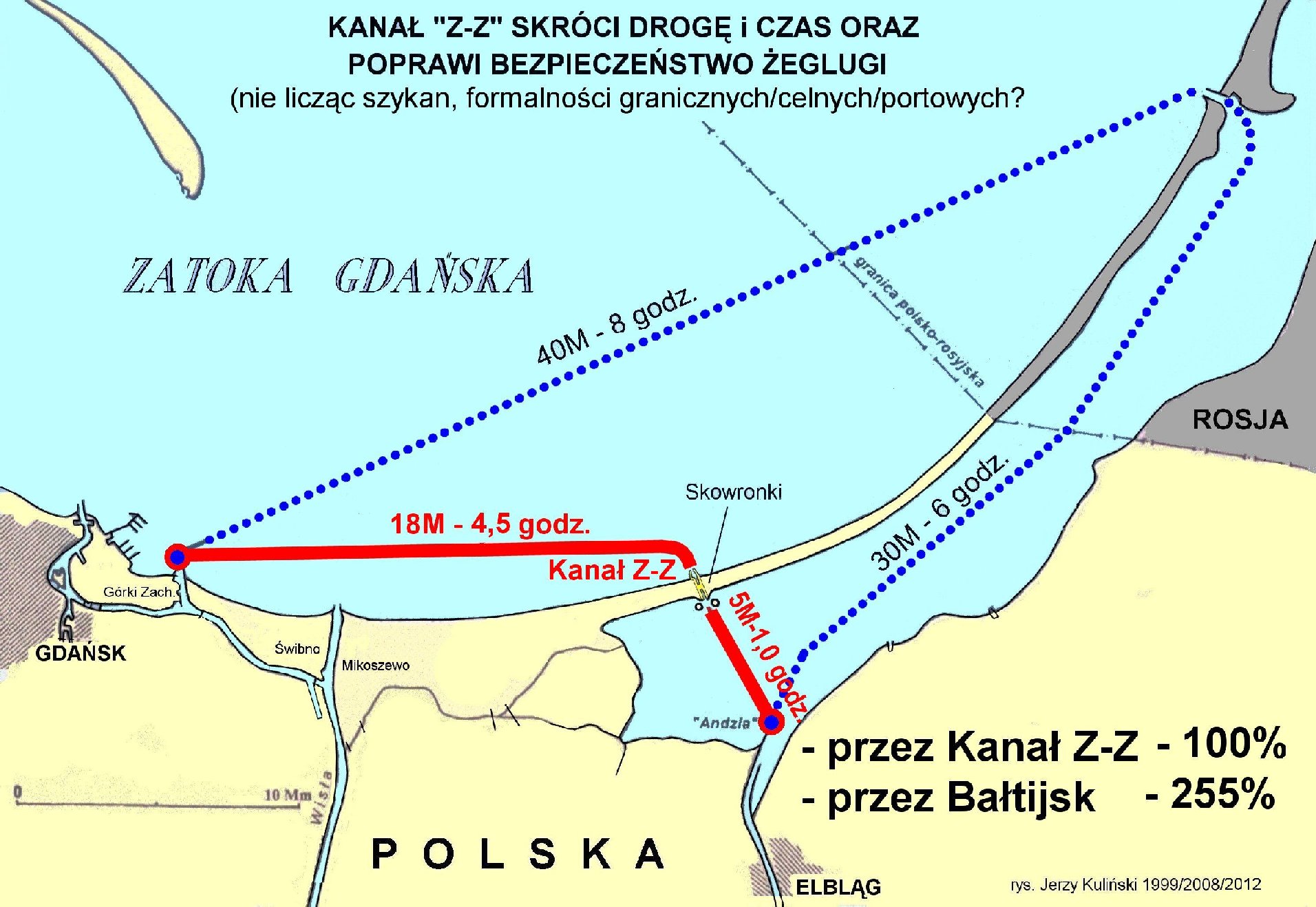 Nie pisałbym tak gdybym nie rozmawiał z ludźmi podczas moich wypraw na zachód. Gdańsk do dziś cierpi z powodu swej przeszłości. Dlatego musimy robić wszystko aby być niezależnym wobec Rosjan i w polityce Zalewu Wiślanego. Uważam że powinniśmy wraz z Litwą wypracowywać nowe morskie tradycje. Udrożnić E70 i rozpocząć ekspansję turystyki morskiej i śródlądowej właśnie w kierunkach na Litwę, Łotwę i Estonię. Budowa kanału na zalew w Skowronkach i przystani na trasie E70 wraz z dobrym marketingiem zmarginalizuje zachowania Rosjan w obwodzie. Mam jakieś dziwne przeczucia że E70 nasze rządy udrażniają tak aby jej za bardzo szybko nie udrożnić. Ale może przesadzam?