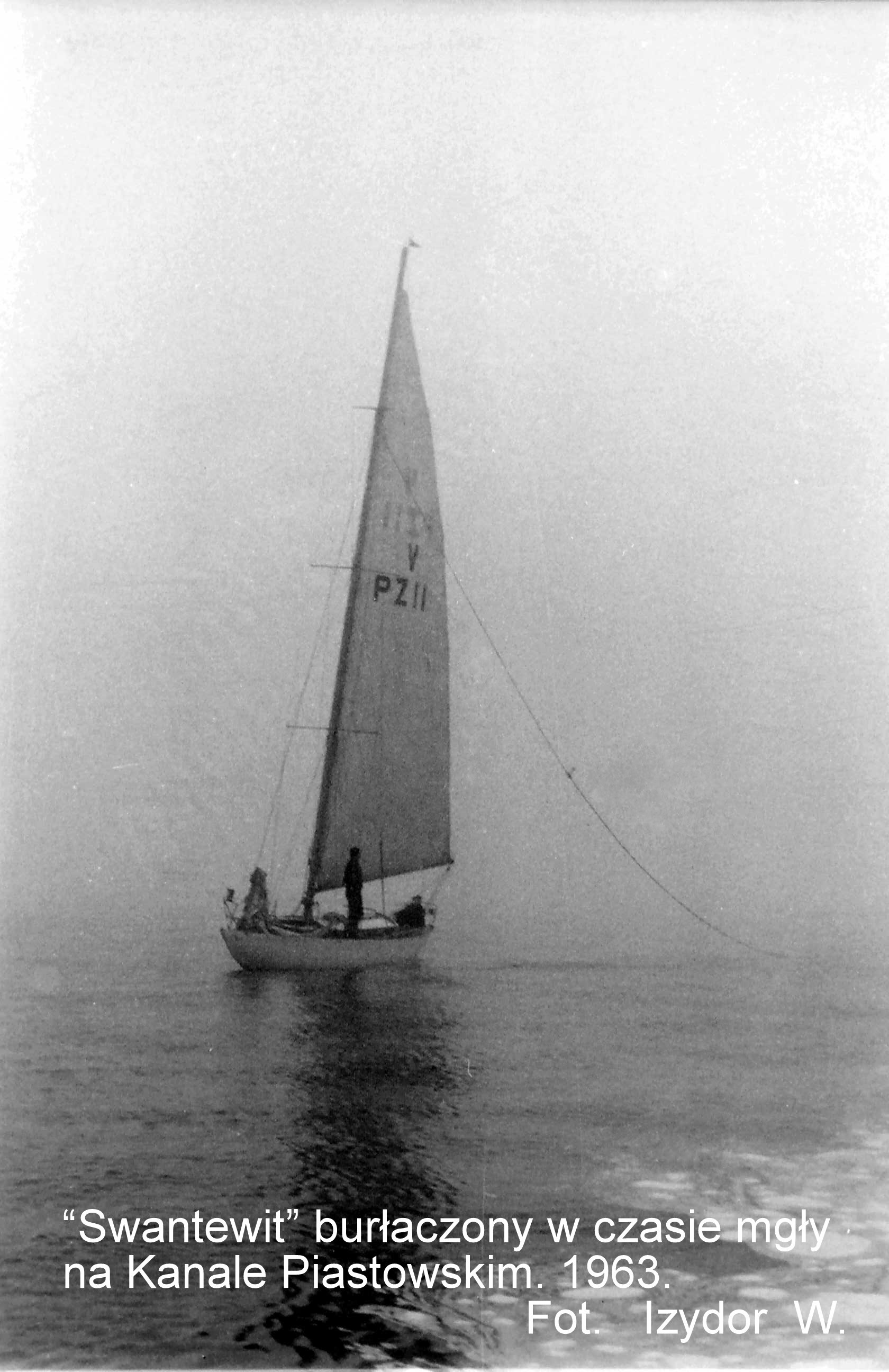 Ze Swinoujścia wyszliśmy z lekkim wiatrem z kierunku SW oczywiście halsując po Świnie ale w Kanale Piastowskim dopadła nas mgła tak, ze o halsowaniu nie było mowy ze względu na potencjalny ruch statków jak i to, że drzewa z obu stron Kanału wyciszyły i tak nie za duży wiatr. O ucieczce z środka kanału przed płynącym statkiem nie było mowy. "Młodym" wyjaśnię, że ani UKF-ek ani radia nie było a jacht był pięknym regatowcem bez silnika.