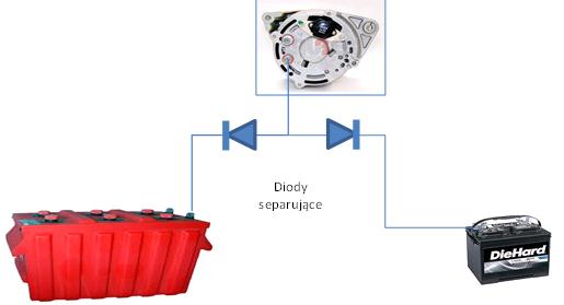 Każda z diód działa jak zawór jednokierunkowy nie dopuszczając, aby akumulatory rozładowywały się wzajemnie. Skąd wziąć diody?