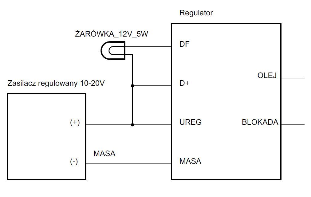 Po odłączeniu zacisku UREG od zasilacza żarówka powinna zgasnąć, po ponownym przyłączeniu UREG (po kilku sekundach od przyłączenia) powinna się zapalić.