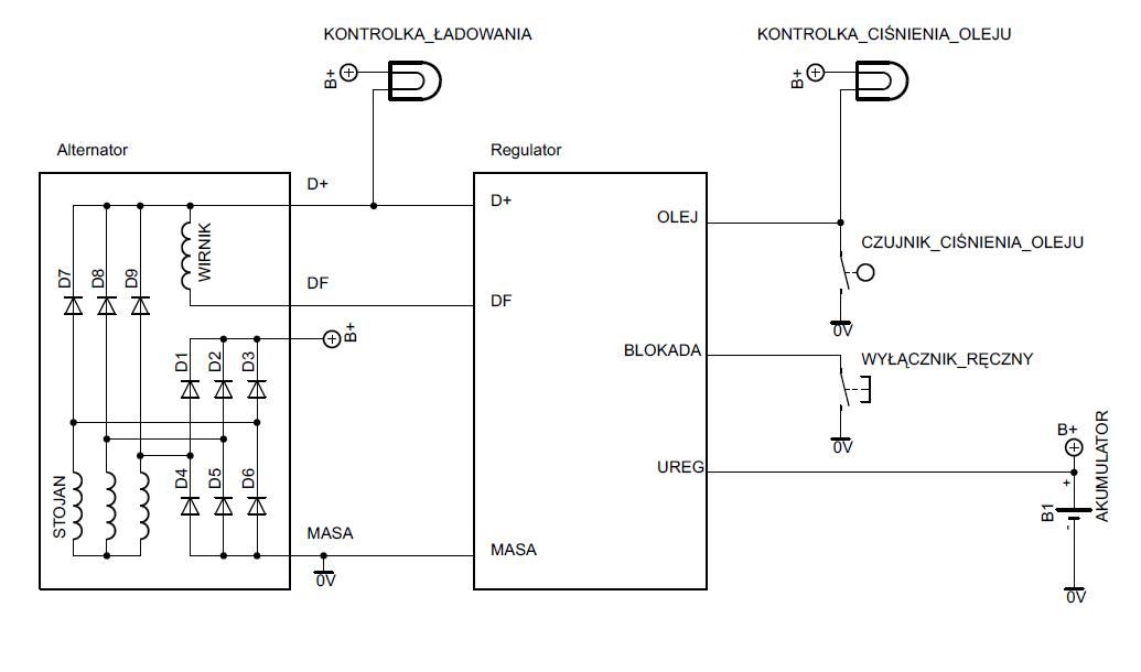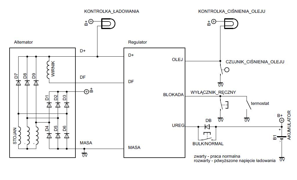 3)      Napięcie regulacyjne pobierane jest bezpośrednio z zacisku (+) akumulatora.