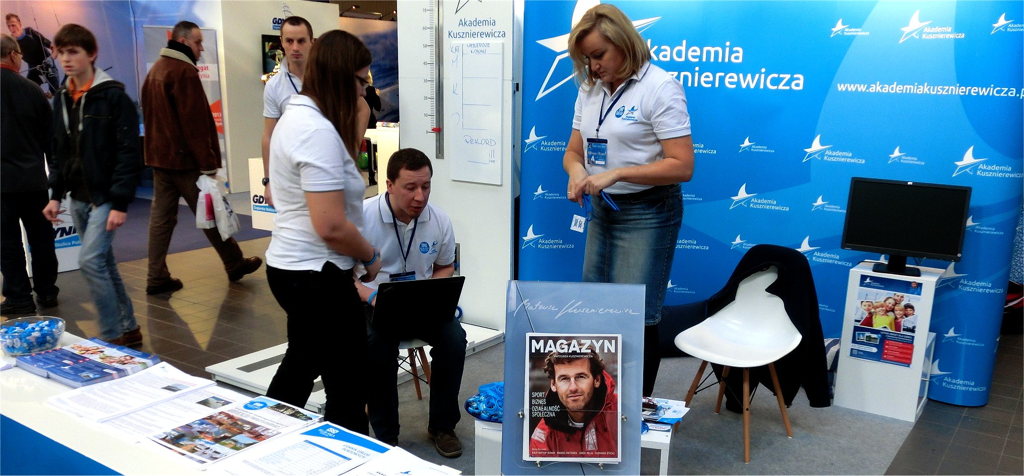 Tak, jak w tytule - nie traktujcie tego jako sprawozdania, bo impreza była ogromna. Nie tylko wystawienniczo, ale i bogata w programowe pokazy, referaty i przechwałki. Wystawiło się 411 firm, stowarzyszeń, fundacji i innych. To nowy rekord targów "Wiatr i Woda" na przestrzeni 25 lat. Oczywiście nie obejrzałem nawet połowy ekspozycji. Nie tylko dlatego, ze było ich tak wiele, ale przede wszystkim dlatego, że na targi zostałem zaproszony przez Redakcje mojego miesięcznika "ZAGLE" w zupełnie innym celu. Nie po abym się wałęsał po halach, ale aby umożliwić mi żywy kontakt z Czytelnikami artykułów, książek oraz SSI. Jestem nie tylko Redakcji, ale i Prezesowi MURATOR EXPO - Jackowi Orylowi bardzo wdziączny. Muszę też podkreślić niesłychanie troskliwą, samarytańską opiekę, którą otoczył mnie team standu "Zagli" - Michał Bąk, Gosia Stobnicka, Ania Gładyszewska.