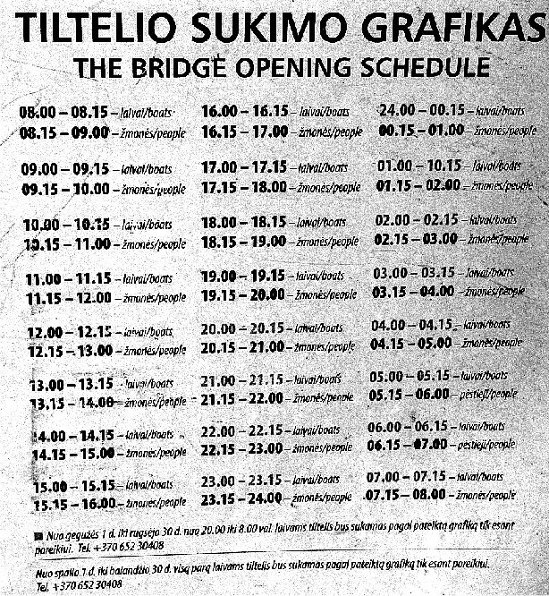 W roku 2010 sprawdziłem, że żeby otworzyć mostek około godziny 2, trzeba znaleźć śpiącą obsługę i poprosić o otwarcie.