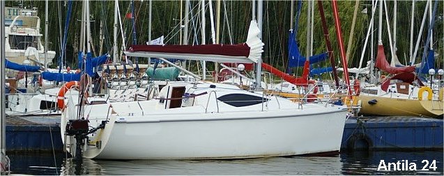 Jacht Cerberyna – Mila, Fokus 650, z silnikami zaburtowymi Honda 8 KM i 2,3 KM.