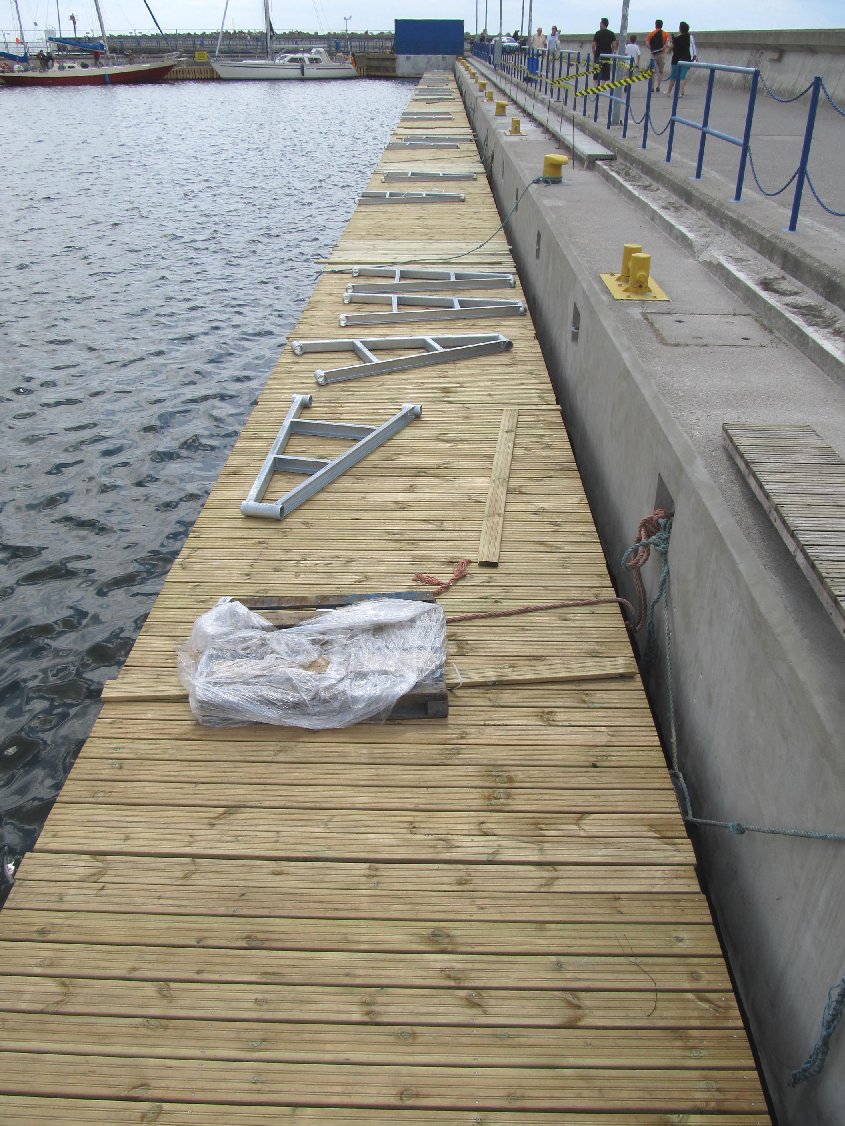 - z kei północnej usunięto małe kutry rybackie a keję przygotowuje sie do montażu pływającego pomostu dla jachtów