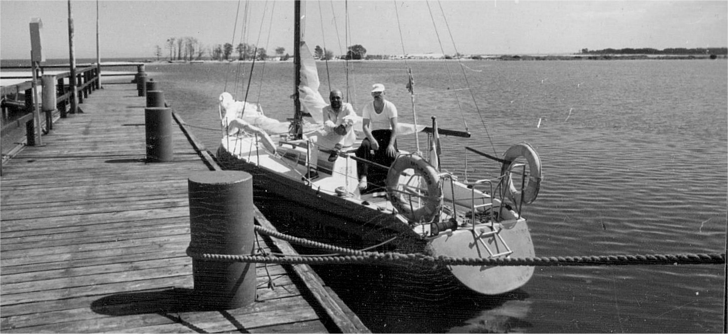 Rano dostrzegamy wąziutkie kładki, a właściwie trapiki, po których można dostać się na ląd. Przy jednej z dalb cumuje malutki jachcik "Wiktoria" (typ "Miś", projekt Zbigniewa Milewskiego). Na jachcie samotny żeglarz - Mirek Włodkowski ze Słupska. To początek nowej przyjaźni. Mirek żeglował ze mną później wielokrotnie na jachcie "MILAGRO V". Niestety po kilku latach pokonała go okrutna choroba.