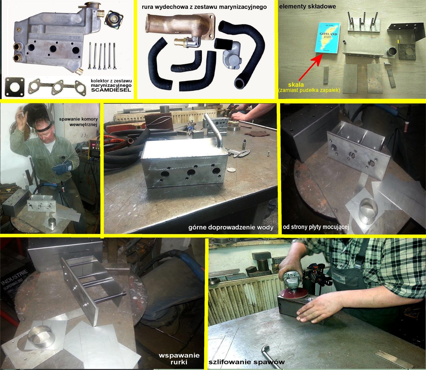A więc - skoro już wybraliście, sprawdziliście i kupiliście używany silnik KUBOTA D722-E38 (3 cylindrowy, rzędowy diesel, 719 ccm, obr. max. 3600, moc 20 KM, masa 63 kg) - czas przystąpić do wyposażenia go w takie coś, czego w dotychczasowej lądowej służbie nie posiadał. Chodzi oczywiście o kolektor wydechu - chłodzony wodą. Tekst ten przyjąłem z dużym zaintersowaniem, jako że jest to profesjonalny opis czegoś podobnego do tego, co mozolnie konstruowałem przed laty w oparciu tylko o intuicję, aby nie napisac - instynktownie.