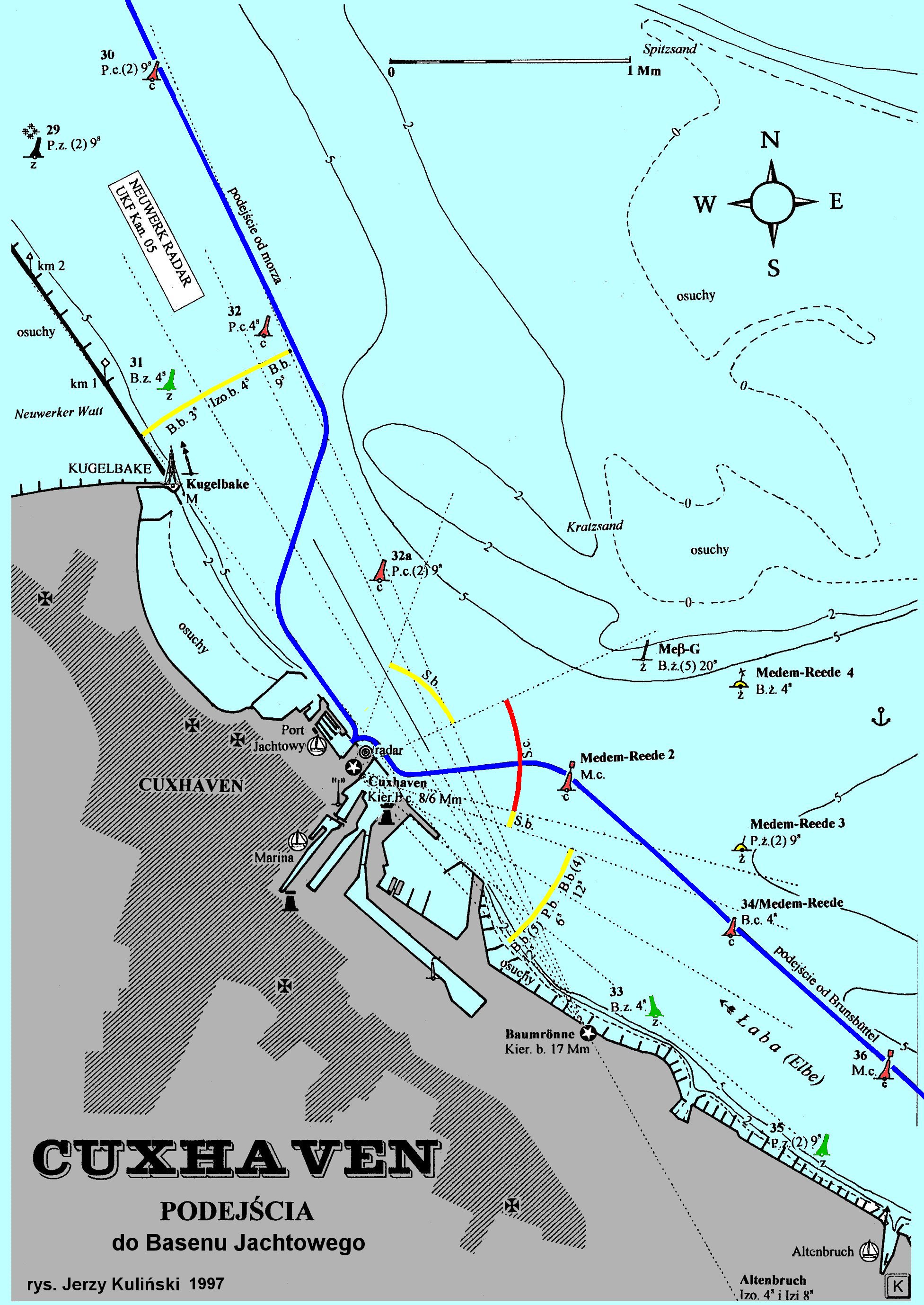 Dziękuję Don Jorge za mapkę Cuxhaven. Dziś już nie pamiętam, gdzie dokładnie staliśmy wtedy, mogę zgadywać, że bezpłatnie, czyli nie w porcie jachtowym. Warto pamiętać, że opłata postojowa w ówczesnych marinach była dla Polaka równa mniej więcej miesięcznej pensji! Ale bywało też tak, jak w Marinie Baltica w Travemuende, gdzie jachty pod polską banderą były przyjmowane bezpłatnie! Może o tym kiedyś jeszcze napiszę...
